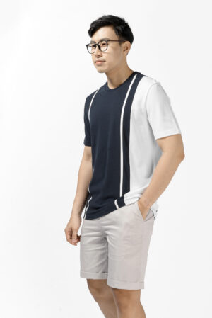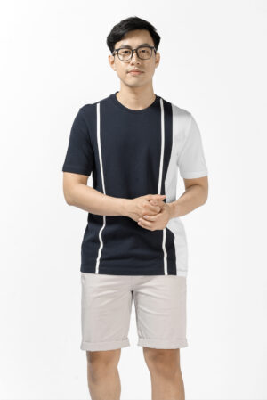 ÁO THUN TAY NGẮN PHỐI RÃ IN SỌC. REGULAR FORM – 10S21TSH006